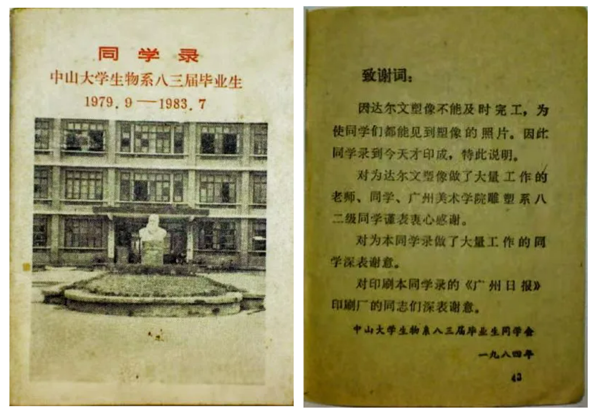 如今在生物楼前,我们只能看到达尔文像背后刻着“中大生物系七九级赠”几个字,旁边没有更多的介绍。近日,我们有幸邀请到几位79级生物系校友进行线上访谈,尽管是远程交流,却仿佛听到了他们娓娓道来达尔文像背后的故事。