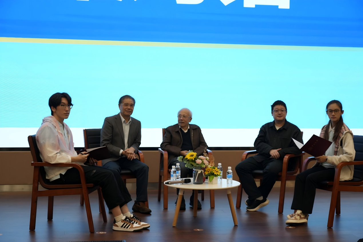 本次分享会——圆桌对话,庞义教授、李鸣光教授和崔隽教授与学生代表姜子煜、李亦蒙同学面对面交流,围绕大学适应、科研计划、成长规划等核心话题展开了深入的交流。