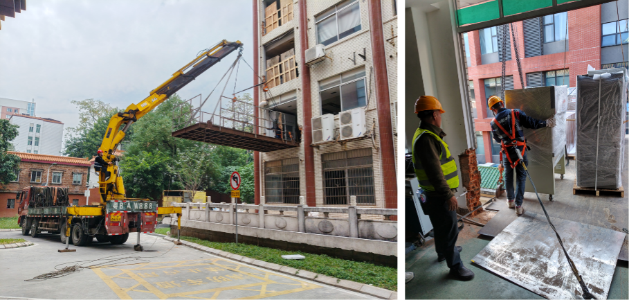 本次搬迁工作覆盖学院公共平台多台大型精密仪器及多个科研实验室。受曾宪梓南院无电梯的楼宇条件限制,搬迁工作任务繁重、实施难度较大。为保障搬迁工作安全、有序、高效推进,学院提前统筹谋划,制定周密搬迁方案与应急预案,对设备转运、物资安置、人员调度等关键环节实施精细化管理,全方位确保仪器设备、实验材料及科研资料安全转运、妥善安置。搬迁期间,公共平台及相关实验室师生充分彰显大局意识与协作精神,主动投身物资打包整理、仪器设备维护、新实验室调试运行等各项工作,以扎实行动有力落实学院整体工作部署。