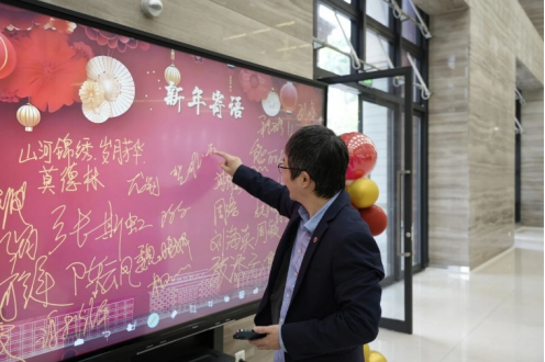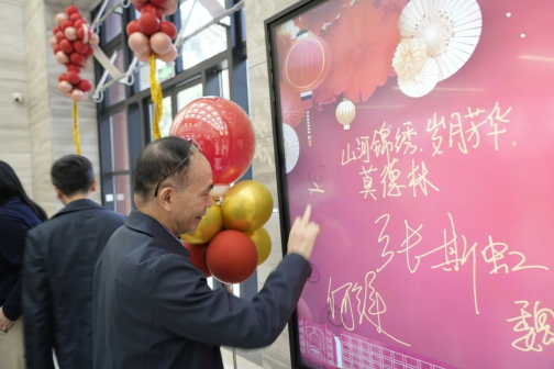 电子签名墙前,笔尖落下的是祝福,定格的是新老同行的温暖记忆