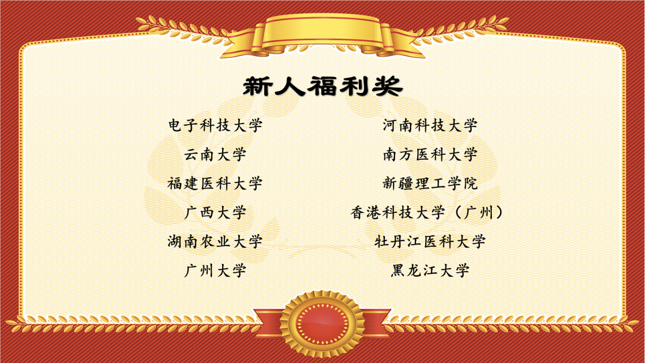 在参赛的所有高校中,电子科技大学以一个校区92种(审核后91种)的记录,夺得所有队伍中单校区最高鸟种纪录,故授予“一个校区也能看奖”!