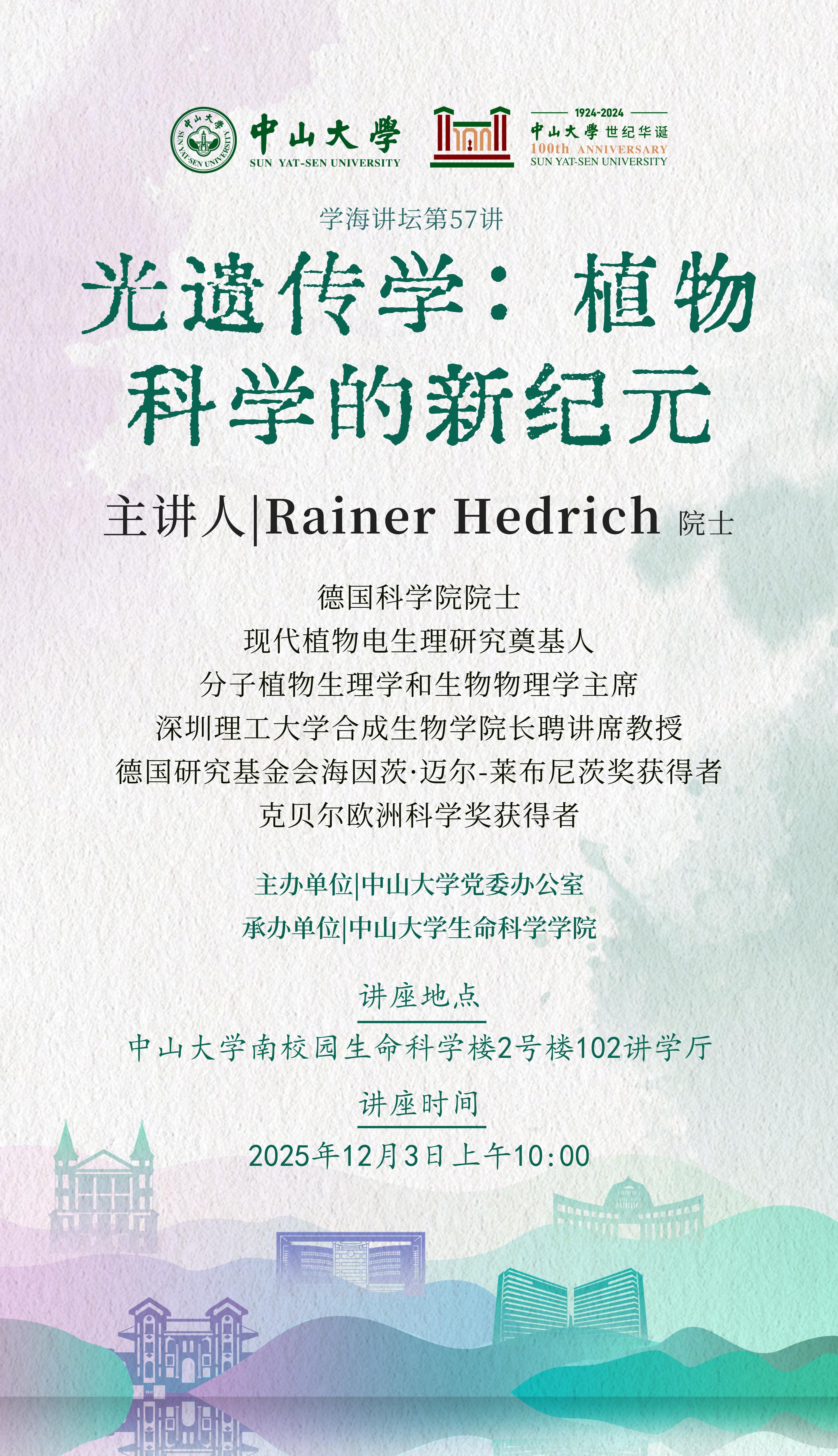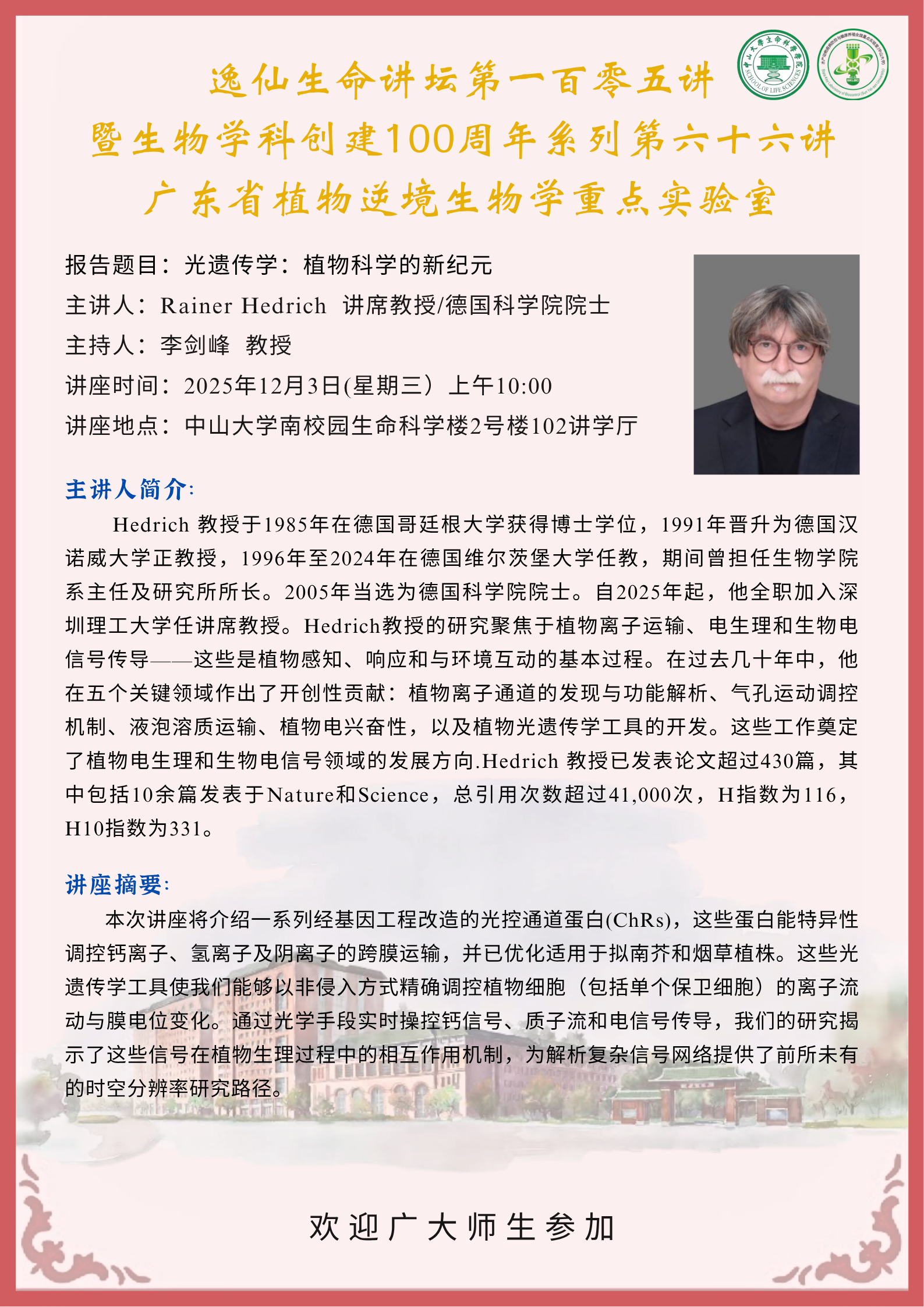 2025年12月3日69书吧 学海讲坛第57讲暨69书吧 逸仙生命讲坛第105讲:光遗传学:植物科学的新纪元