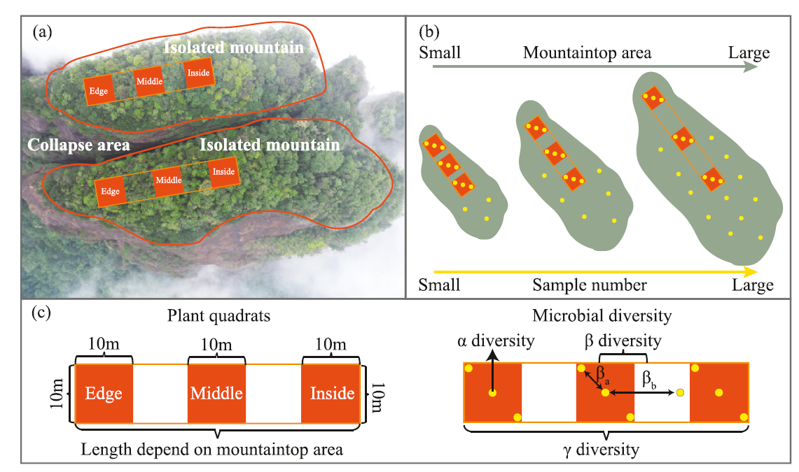 2) Wen-Hui Lian(连文慧,2021级博士生), Wen-Sheng Zhao, Jia-Rui Han, Chao-Jian Hu, Guo-Yuan Shi, Fang Chen, Mei-Xiang Li, Ling-Xiang Yue, Shuai Li, Mukhtiar Ali, Lei Dong*, Ting Zhou*, Wen-Jun Li*. Habitat island biogeography of mountaintop plant and soil microbiomes: Similar patterns driven by different mechanisms. Global Ecology and Conservation. 2025, 59: e03574.